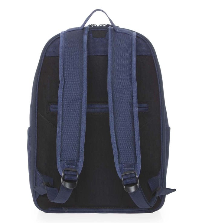 The rounded backpack is made from Mandarina Duck's iconic and premium quality material with a two-tone effect. It offers an ultra-functional interior and exterior with two velcro side pockets and two zipped front pockets. It can fit a 15-inch computer and a 9.7-inch tablet.