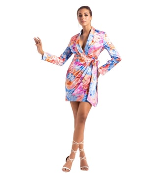 Mandira Wirk Blue Dancing In The Sand Floral Camo Romper Dress with Back Fastning and Fabric Belt