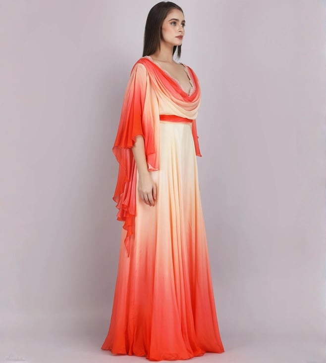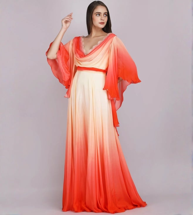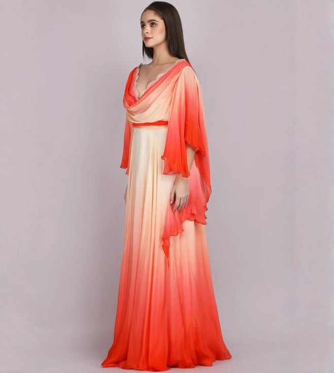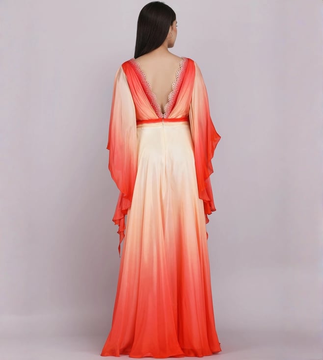 Mandira Wirk Red Beige Ombre Love Heals Sunset Glow Gown