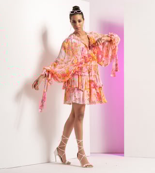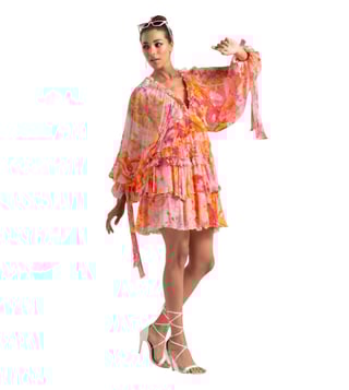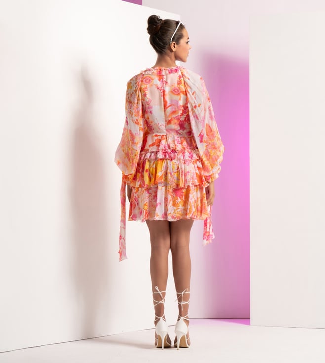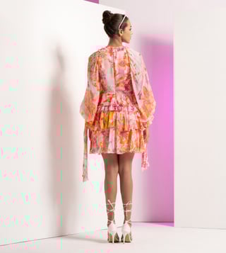 Strut the streets in style by wearing this dress made using chiffon. The tiered design creates a playful and dynamic silhouette, while the dress exudes an air of sophistication. It's the perfect choice for those who want to make a stylish and memorable impression, as it embodies the fusion of timeless beauty with a modern edge, allowing you to stand out with flair and confidence. Disclaimer: Product colour may slightly vary due to photographic lighting sources. Country of Origin - India.