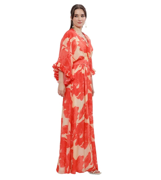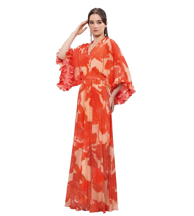 Mandira Wirk Saffron Blazing Long Dress With Belt