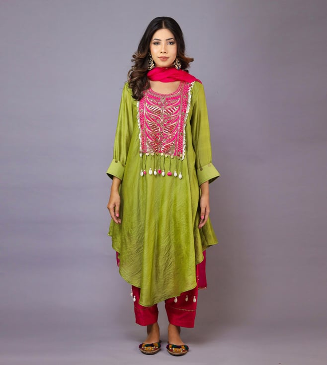 Mehndi Green & Pink Noor Kurta and Pant With Dupatta