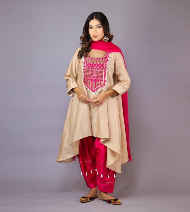 Beige & Hot Pink Noor Kurta with Pant and Dupatta