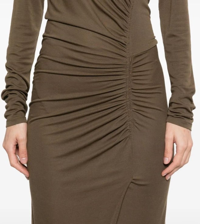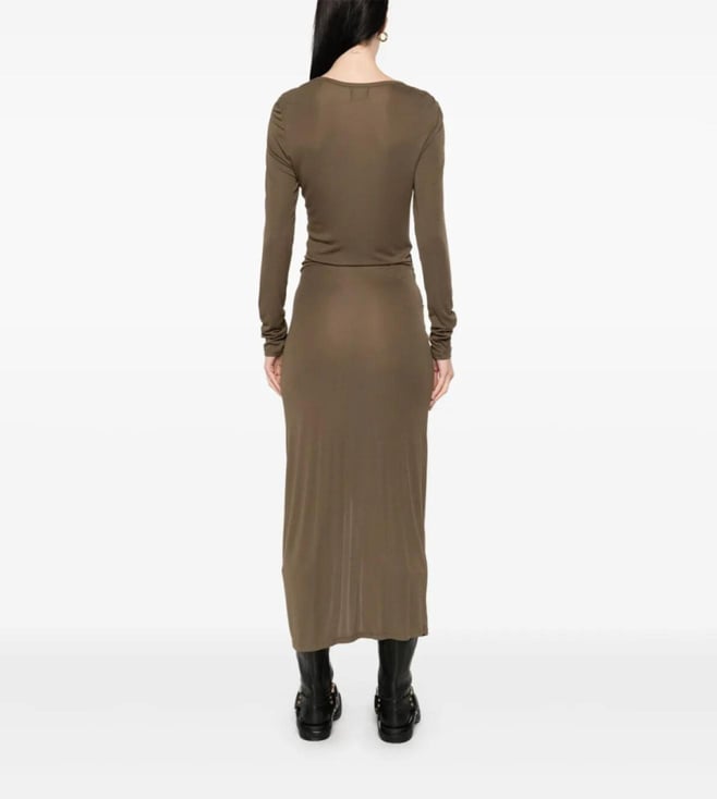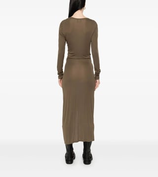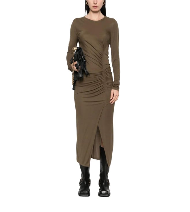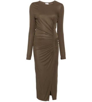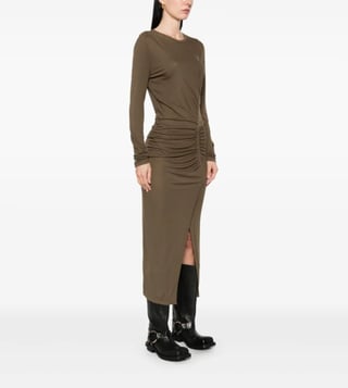 Embrace timeless elegance with this exquisite brown dress, designed for the modern woman who values both comfort and style. Crafted from a luxurious blend of 97% modal and 3% elastane, this dress offers a soft, breathable feel with just the right amount of stretch. The solid pattern exudes sophistication, while the regular fit flatters every silhouette. Featuring long sleeves and a classic round neck, this piece is perfect for any occasion. The discreet closure ensures a seamless finish, making it a versatile wardrobe staple.