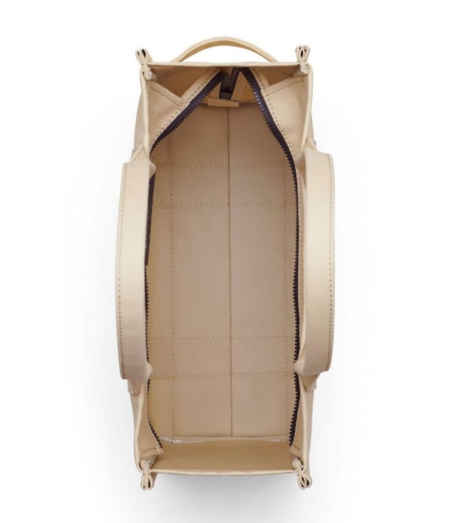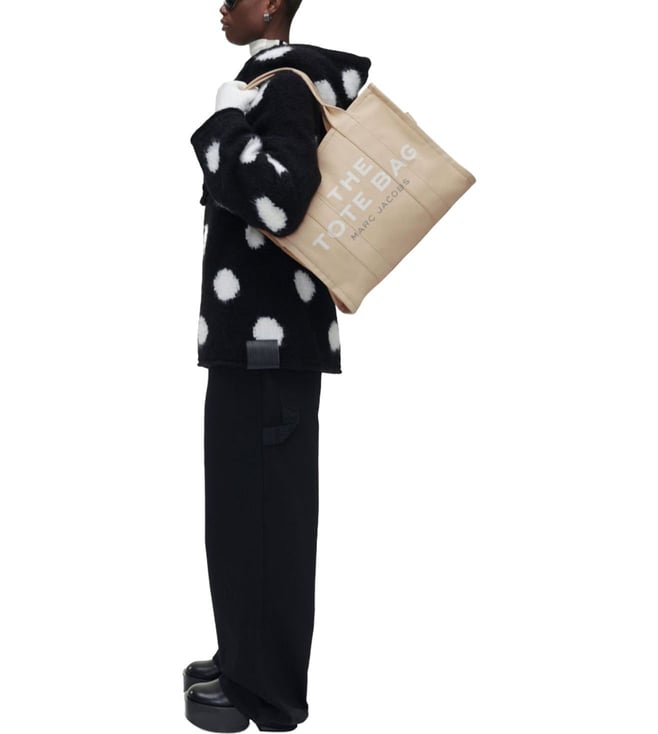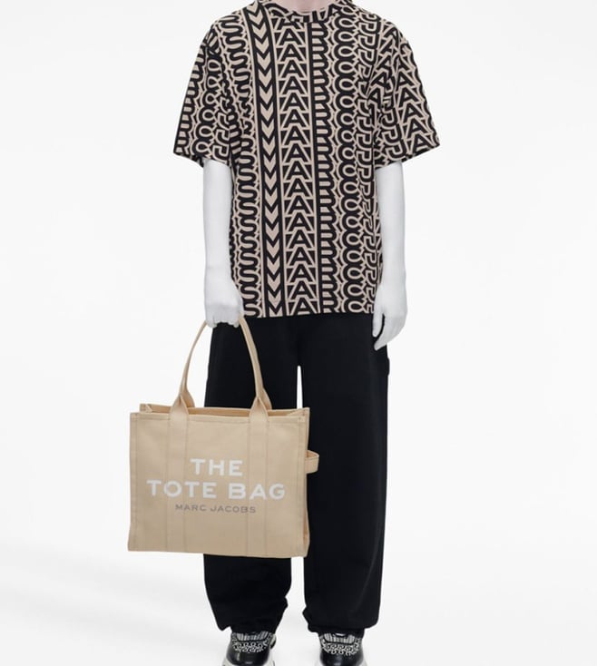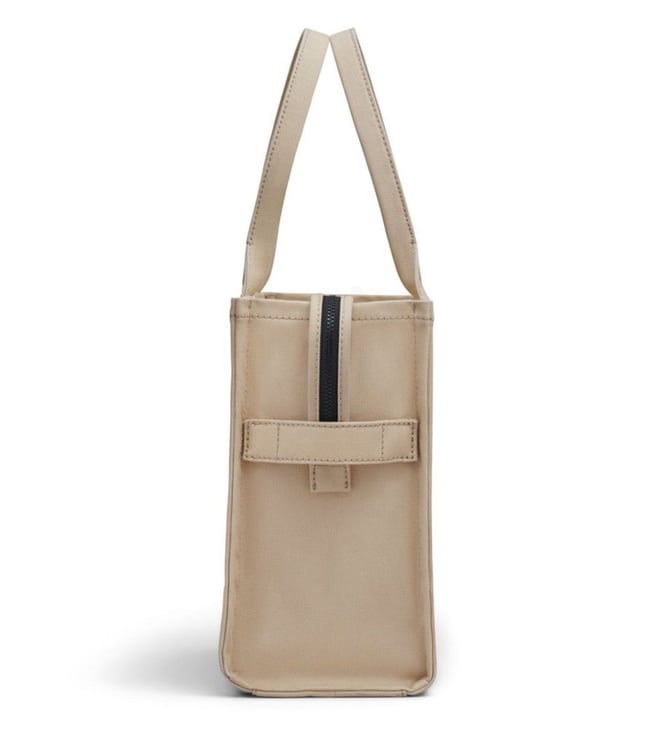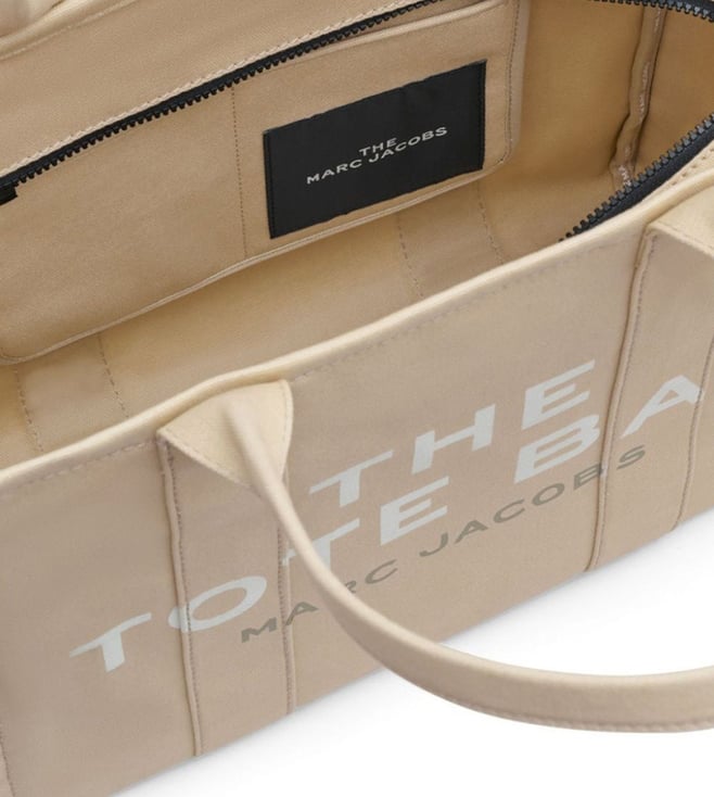 Beige large the tote bag from marc jacobs featuring tonal stitching, logo print to the front, logo patch to the rear, two top handles, top zip fastening and main compartment. Lining: polypropylene 100 percent