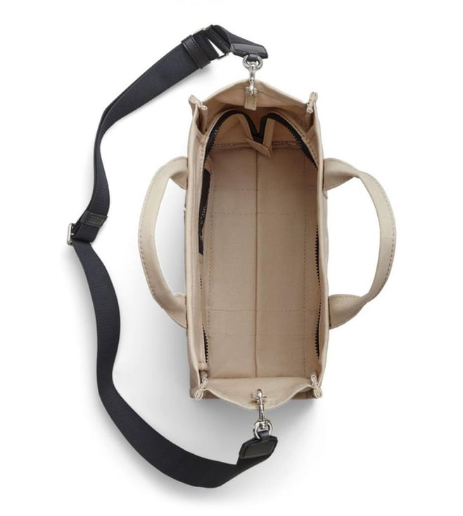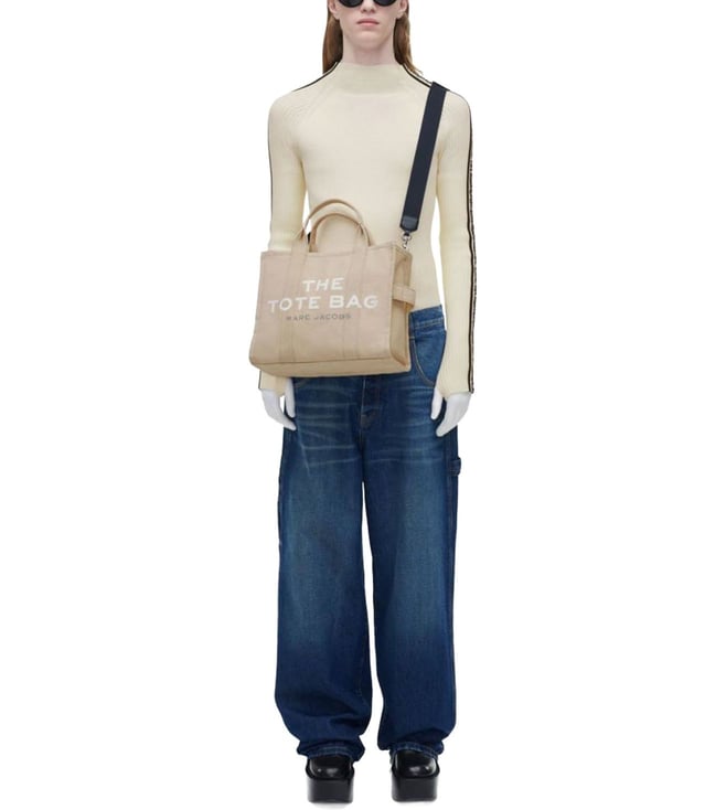 Beige cotton medium the tote bag from marc jacobs featuring logo print to the front, logo patch to the rear, two rounded top handles, adjustable detachable shoulder strap and top zip fastening. Products purchased from Darveys are supported exclusively by the warranty/exchange policies of Darveys and its partner boutiques. Brand owners and their channel partners are not responsible for exchange/warranty services for items purchased through Darveys.