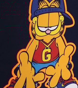 Organic cotton jersey tee-shirt, carbonized finishing, fancy print in collaboration with "Garfield", GARFIELD x MARC JACOBS branding on front.