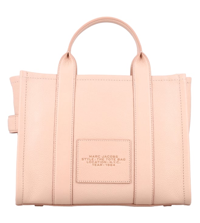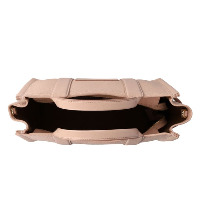 Blush pink leather grained texture debossed logo to the front logo patch to the rear two top handles adjustable detachable shoulder strap single flat side handle top zip fastening main compartment internal zip-fastening pocket multiple internal slip pockets