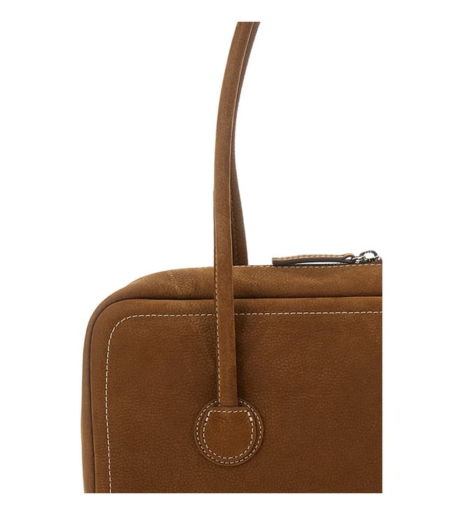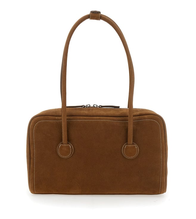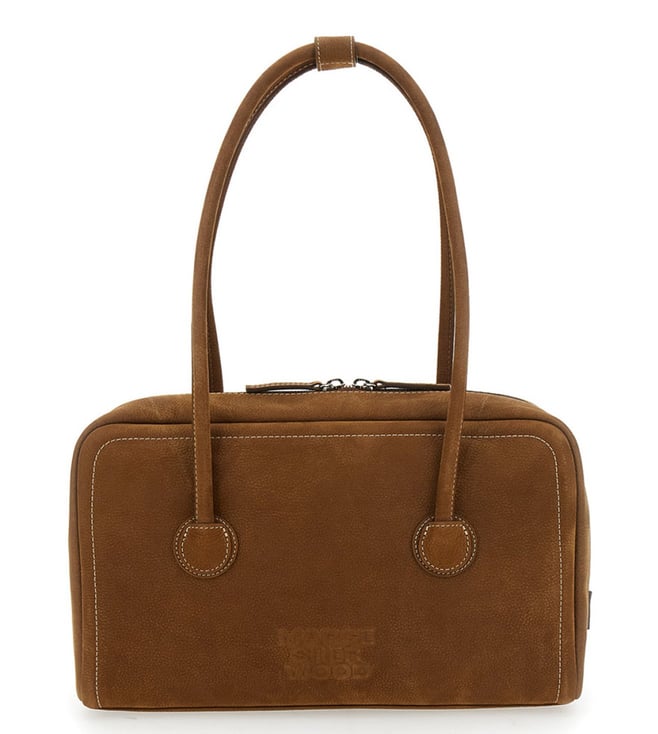 Brown Boston Shoulder Bag, zip closure, 1 compartment, Embossed Logo, textured, dual carry handle.Suede 100% With its timeless design and practical features, this bag is a must-have accessory for the modern woman on-the-go.