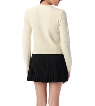 The Marine Serre White Moon-Jacquard Cardigan is a celestial masterpiece, weaving together the ethereal allure of the moon with modern elegance. Crafted from a luxurious blend of 50% wool and 50% viscose, this cardigan offers a soft, sumptuous feel. Its intricate moon pattern dances across the fabric, creating a mesmerizing visual symphony. Designed for women who embrace both style and comfort, the cardigan features a seamless closure, ensuring a sleek silhouette that effortlessly elevates any ensemble.
