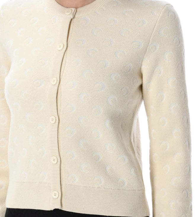Marine Serre White Moon-Jacquard Printed Cardigan