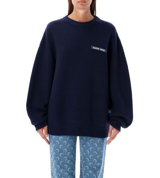 Navy Blue Long Sleeves Logo Sweater