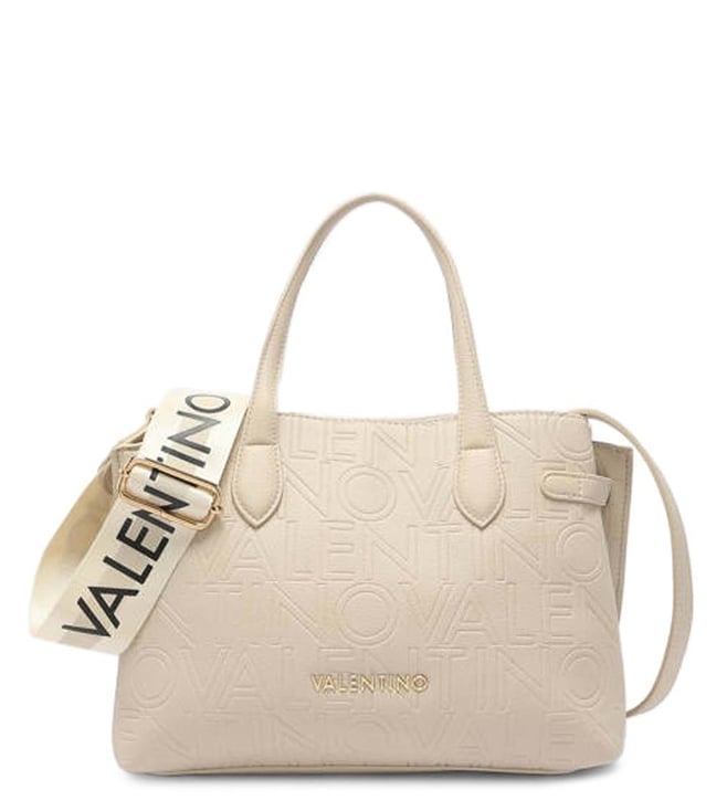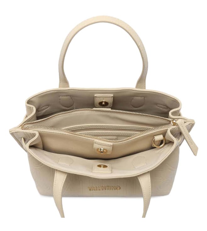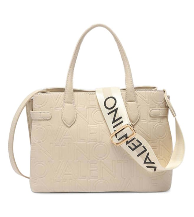 Mario Valentino Off White Pansy Medium Tote crafted in polyurethane featuring zip closure, 2 compartments, middle zip compartment, inside zip pocket, metal logo, dual carry handles with removable and adjustable crossbody strap. Products purchased from Darveys are supported exclusively by the warranty/exchange policies of Darveys and its partner boutiques. Brand owners and their channel partners are not responsible for exchange/warranty services for items purchased through Darveys.