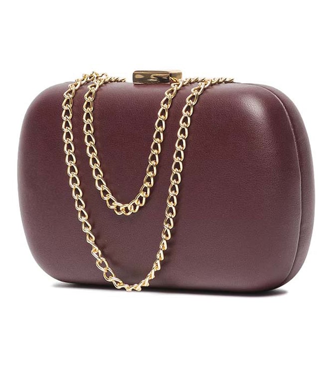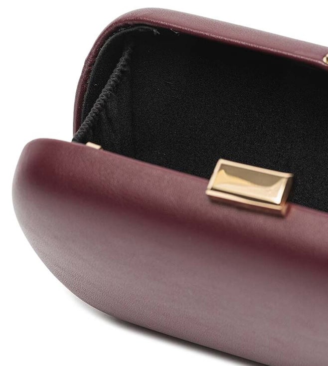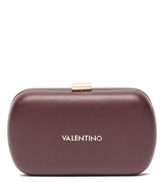 Mario Valentino Maroon Aroma Clutch crafted in polyurethane featuring plug fastener, 1 compartment, front logo, removable chain crossbody strap. Products purchased from Darveys are supported exclusively by the warranty/exchange policies of Darveys and its partner boutiques. Brand owners and their channel partners are not responsible for exchange/warranty services for items purchased through Darveys.