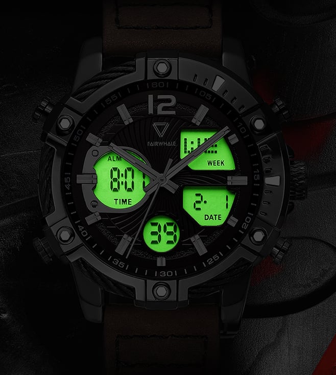 Introducing the Mark Fairwhale FW-4280 Analog-Digital Chronograph Mens Watch, a sleek and stylish timepiece designed for the modern man. With a 48mm case size and a striking black and red color scheme, this watch exudes confidence and sophistication. Featuring both analog and digital displays, this chronograph watch offers precise timekeeping and versatile functionality. Whether youre at the office or out for a night on the town, the FW-4280-4 will effortlessly complement your style and keep you on schedule. Upgrade your wrist game with this bold and reliable timepiece.