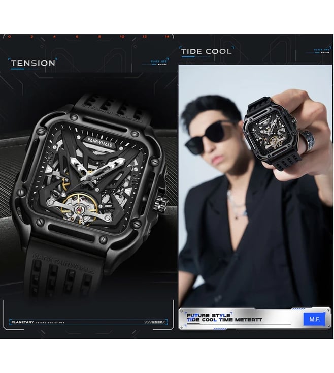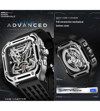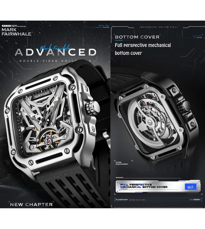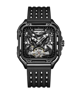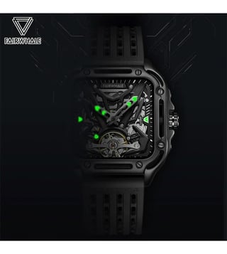 The Fairwhale watch combines Japanese precision with modern design. Powered by an automatic mechanical movement, it ensures accurate timekeeping. The 43.5 mm case, crafted from durable 316L steel, pairs perfectly with shock and scratch-resistant Hardlex glass for clear visibility. A skeleton sports dial reveals the quartz mechanism, adding a distinctive touch. The silicone strap offers comfort with a secure pin closure. With 30m water resistance, it is reliable for daily use and light water exposure.
