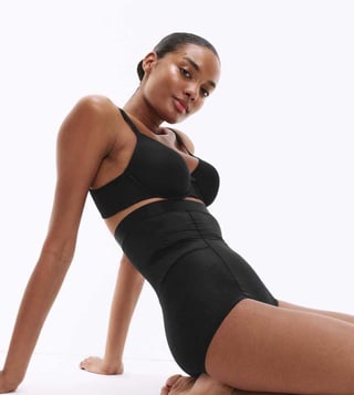 Enhance your silhouette in these shaping knickers with a waist-nipping effect. This high-rise style has comfortable fit. Striped sheer panels give the knickers a striking finish.