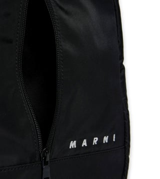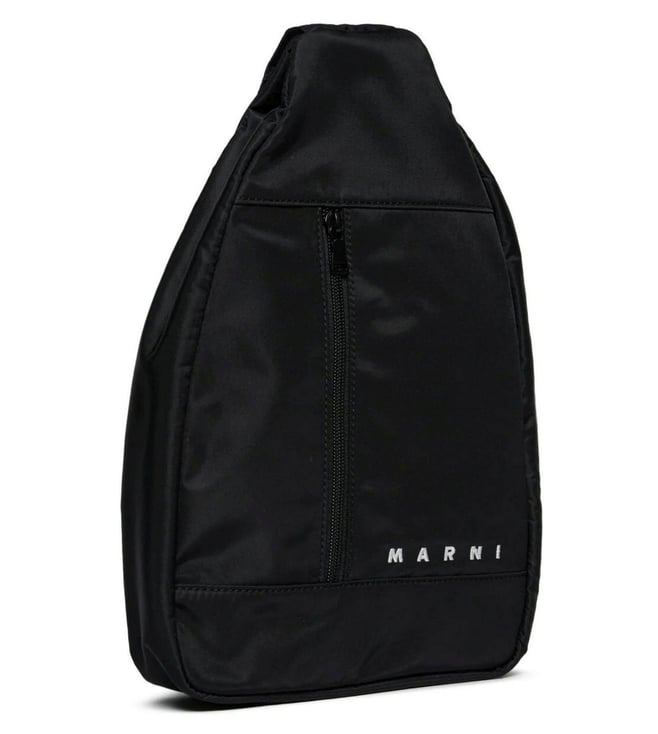 Practical yet stylish, this black backpack from marni kids is designed with a front zip fastening and an adjustable shoulder strap for comfort and ease. Featuring an embroidered logo at the front, its crafted from 100 percent durable polyester, making it perfect for everyday adventures.