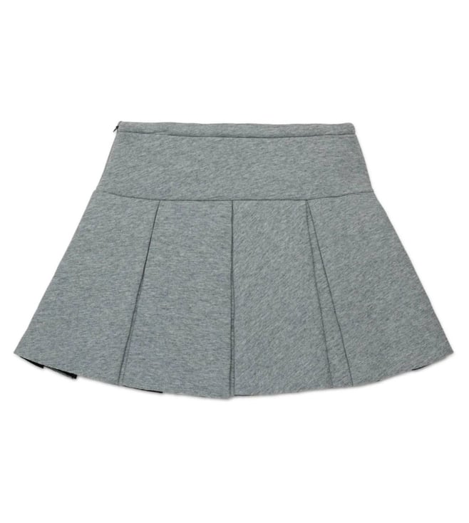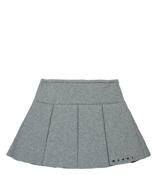 Elevate your childs wardrobe with the Marni Kids Logo Printed Fitted Skirt. This stylish piece in a chic heather grey hue boasts a pleated design and raw-cut hem for a modern touch. The side zip fastening ensures a comfortable fit, making it perfect for both casual outings and everyday wear. Add a contemporary edge to their look with this versatile and trendy skirt.