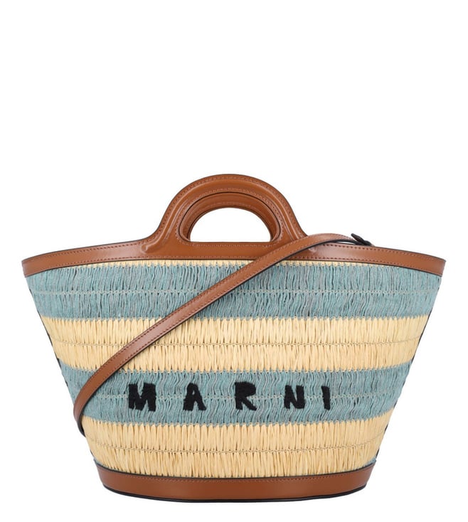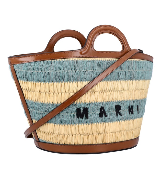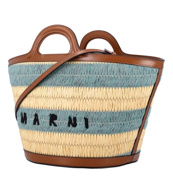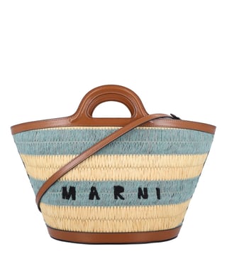 Tropicalia striped handbag in leather and raffia-effect fabric, front marni symbol logo embroidery, double handle, adjustable and removable shoulder strap. Products purchased from Darveys are supported exclusively by the warranty/exchange policies of Darveys and its partner boutiques. Brand owners and their channel partners are not responsible for exchange/warranty services for items purchased through Darveys.