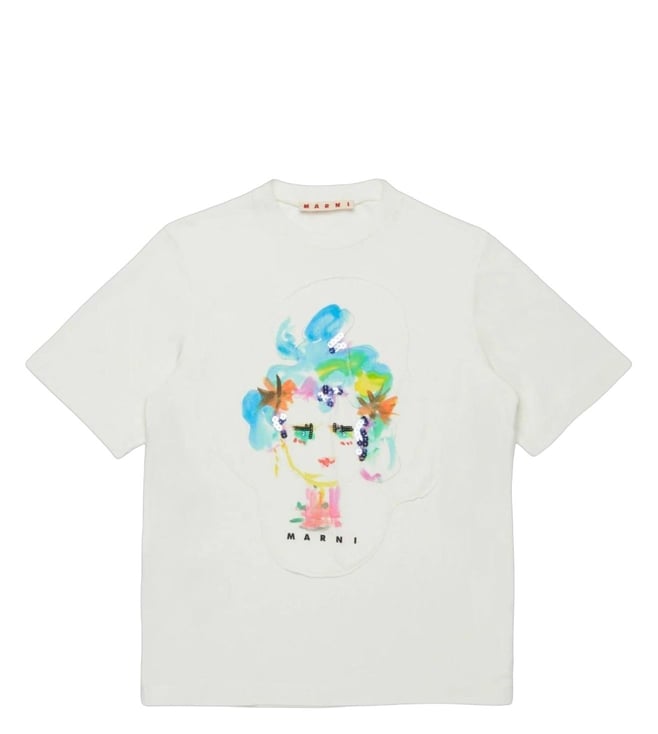 Marni White Sequen Portrait Printed Comfort Fit T-Shirt
