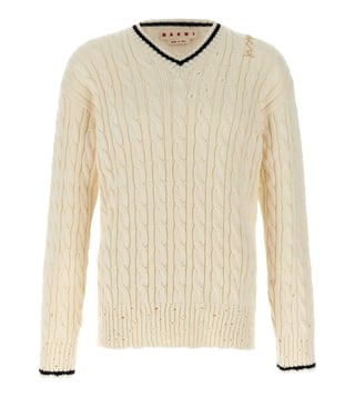 Marni Cream Textured 'V' Neckline Sweater