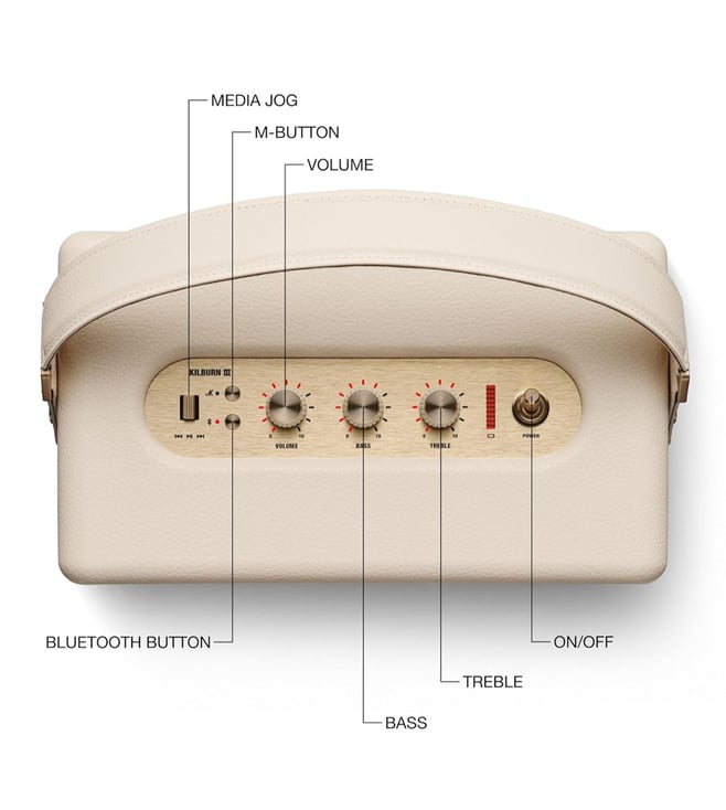 - Kilburn III has been designed so that the bass, mids, and treble adjust perfectly no matter the volume.