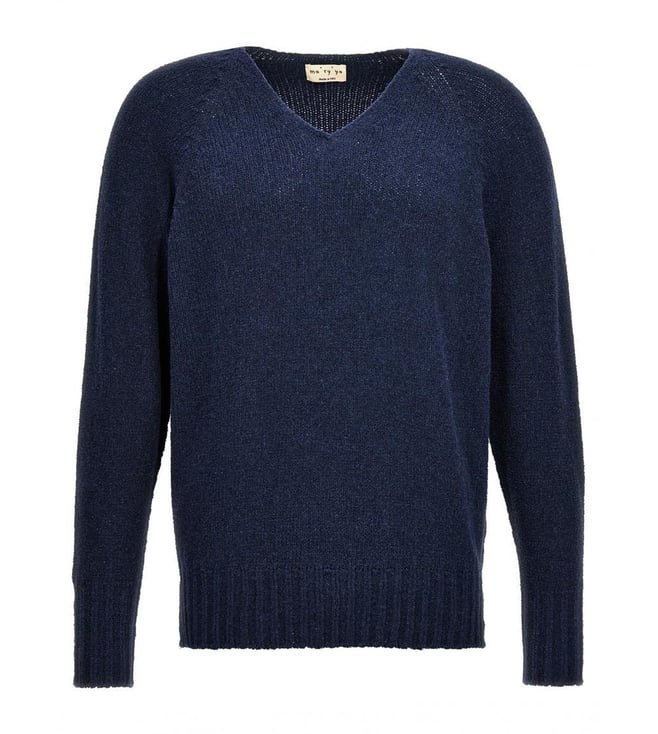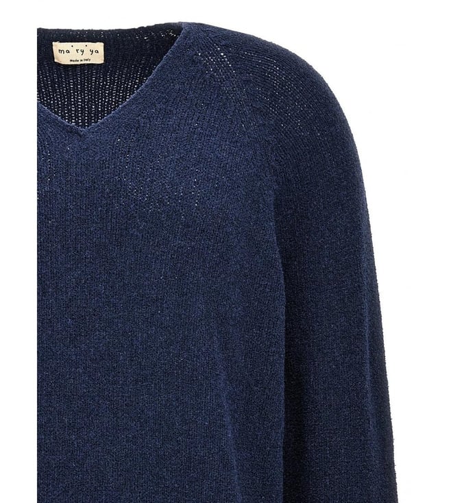 Elevate your style with the Ma'ry'ya Navy Blue Sweater. Cotton blend sweater with V-neck, long cuffed sleeves. True to size fit. Products purchased from Darveys are supported exclusively by the warranty/exchange policies of Darveys and its partner boutiques. Brand owners and their channel partners are not responsible for exchange/warranty services for items purchased through Darveys.