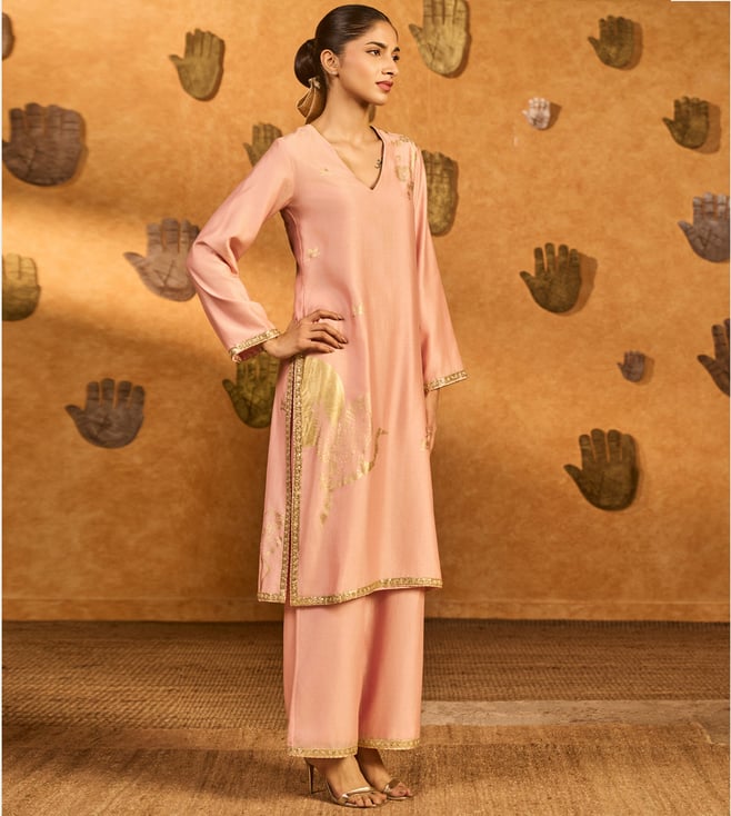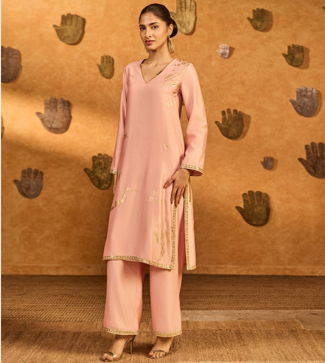 Elevate your style with the Designed for women, Masaba Baby Pink Chanderi Fitted Suit Set this vibrant piece combines comfort and elegance. Disclaimer: All other items in the image are only for display purposes and will not be a part of the delivery content. Product colour may slightly vary due to photographic lighting sources. Country of Origin - India.