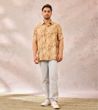 Embrace casual elegance with the Masaba Beige Raw Silk Shirt. Designed for men, it features a relaxed fit, half sleeves, and a unique print, perfect for laid-back occasions. Disclaimer: All other items in the image are only for display purposes and will not be a part of the delivery content. Product colour may slightly vary due to photographic lighting sources. Country of Origin - India.