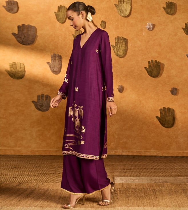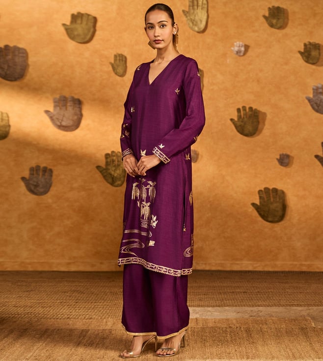 Explore the vibrant Masaba Berry Raw Silk Fitted Suit Set Perfect for any occasion, this stylish and comfortable dress showcases a colorful blend in soft cotton. Disclaimer: All other items in the image are only for display purposes and will not be a part of the delivery content. Product colour may slightly vary due to photographic lighting sources. Country of Origin - India.