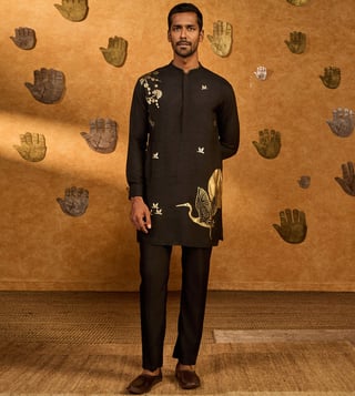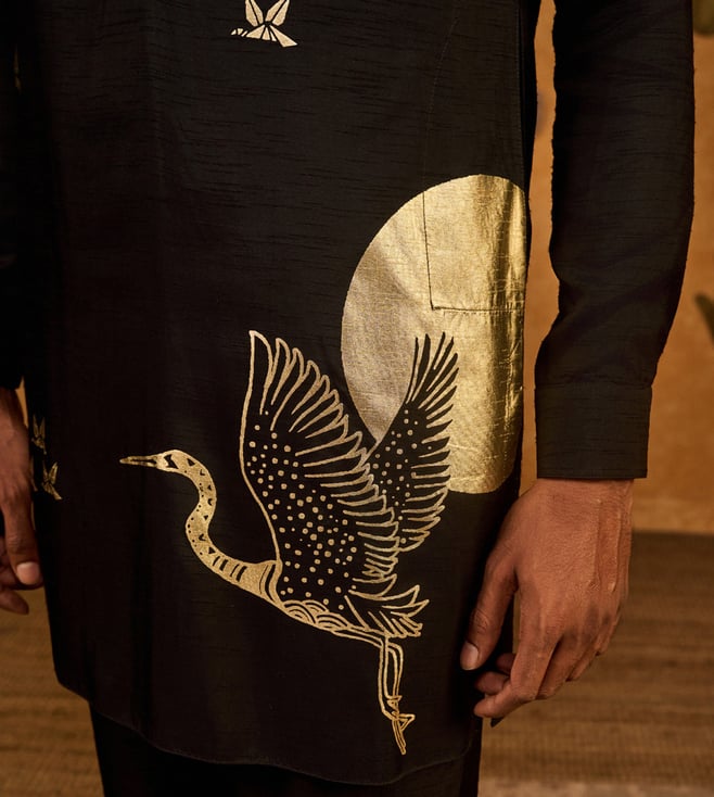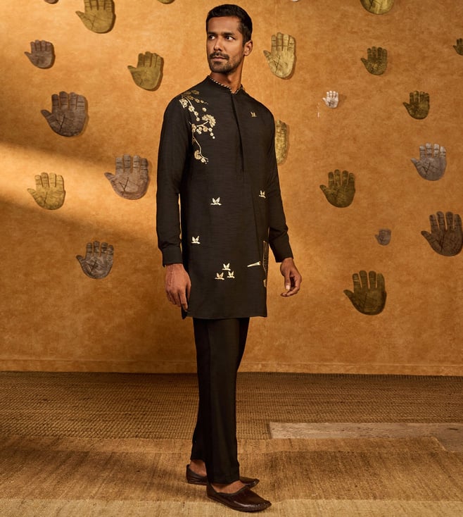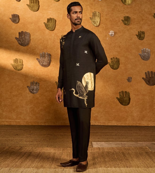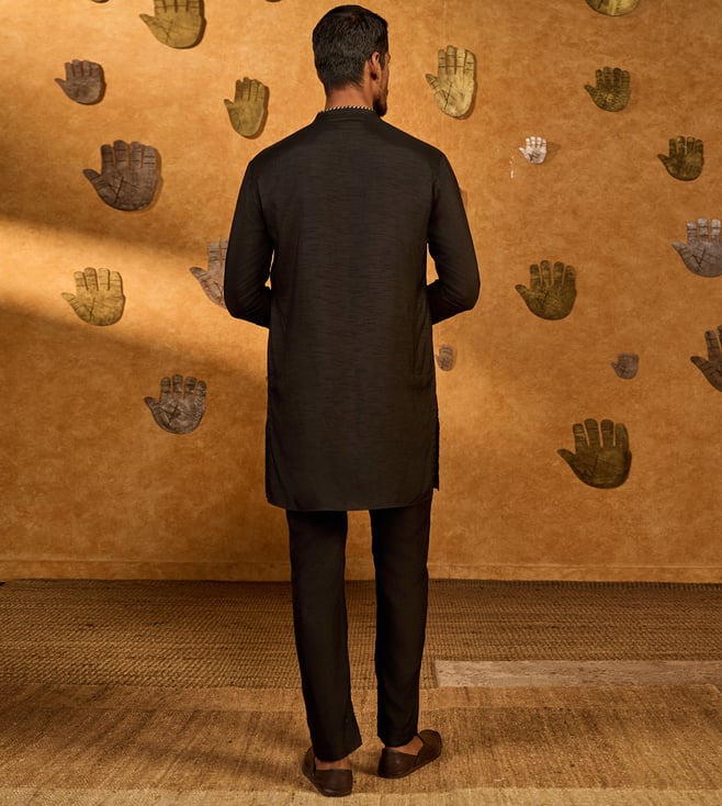 Elevate your style with the Designed for women, Masaba Black Raw Silk Relaxed Fit Kurta Set this vibrant piece combines comfort and elegance. Disclaimer: All other items in the image are only for display purposes and will not be a part of the delivery content. Product colour may slightly vary due to photographic lighting sources. Country of Origin - India.