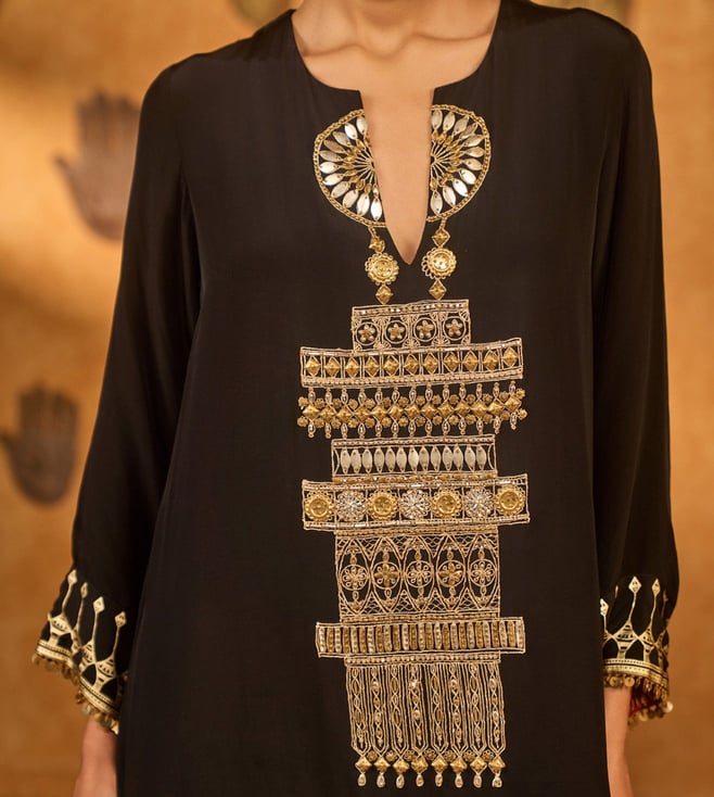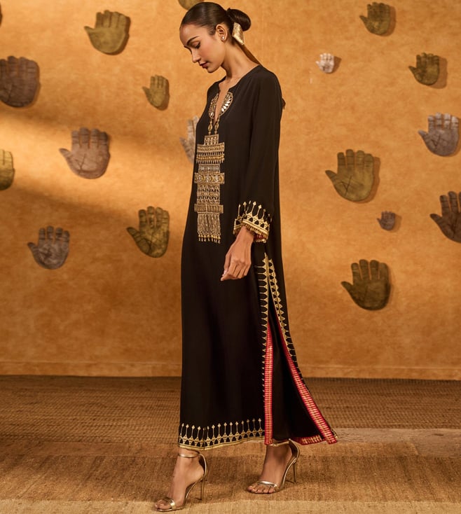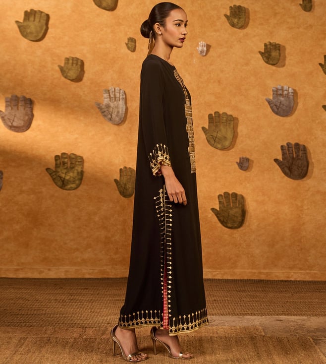 The Masaba Black Crepe Relaxed Fit Suit Set This women's dress combines traditional fabric with vibrant colors for a unique style. Disclaimer: All other items in the image are only for display purposes and will not be a part of the delivery content. Product colour may slightly vary due to photographic lighting sources. Country of Origin - India.