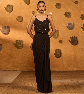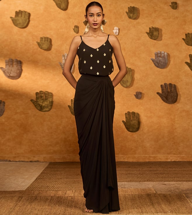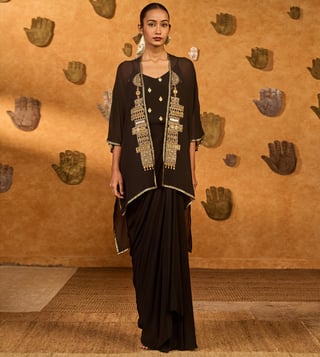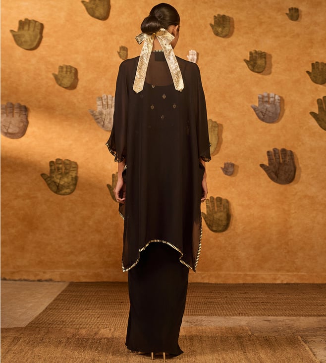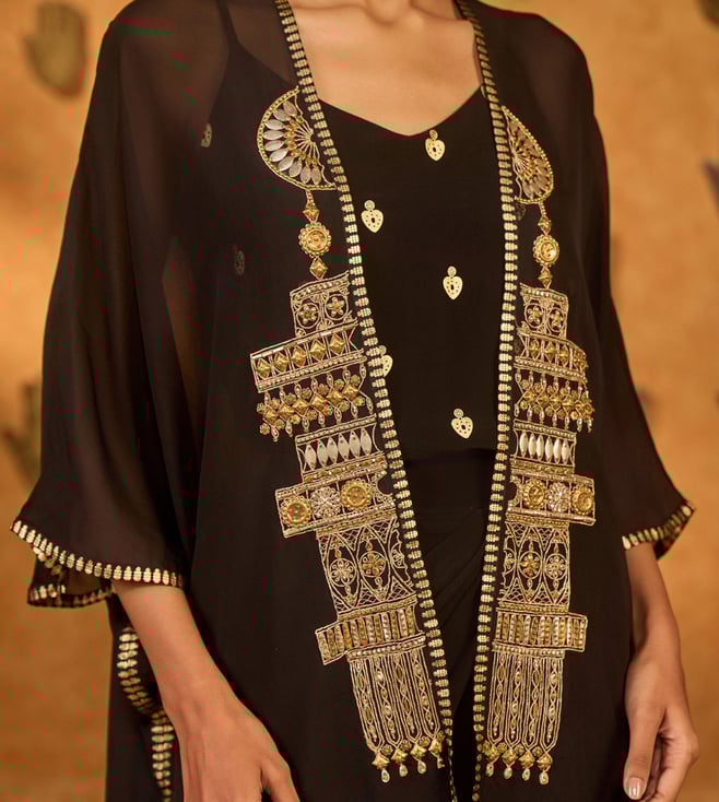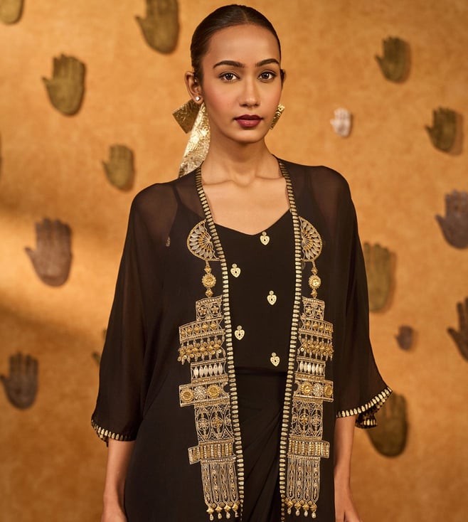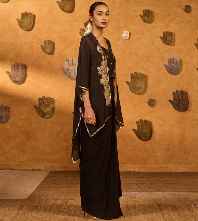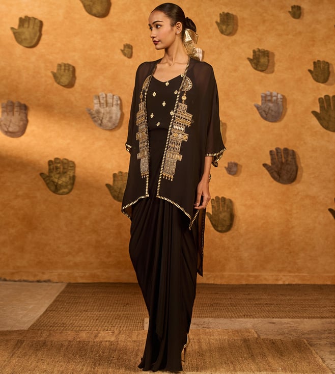 Masaba Black Heartbeat Draped Cape Set