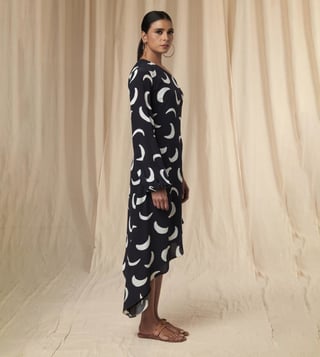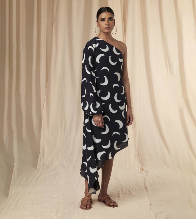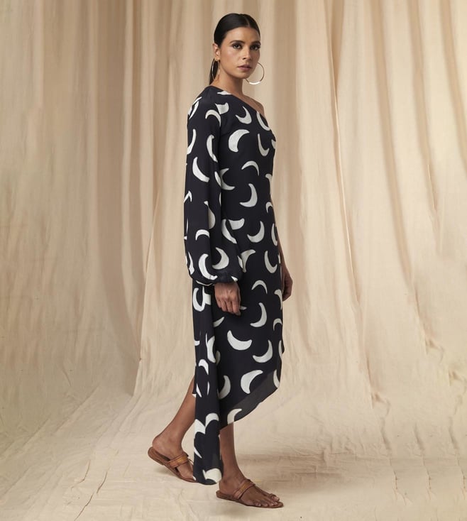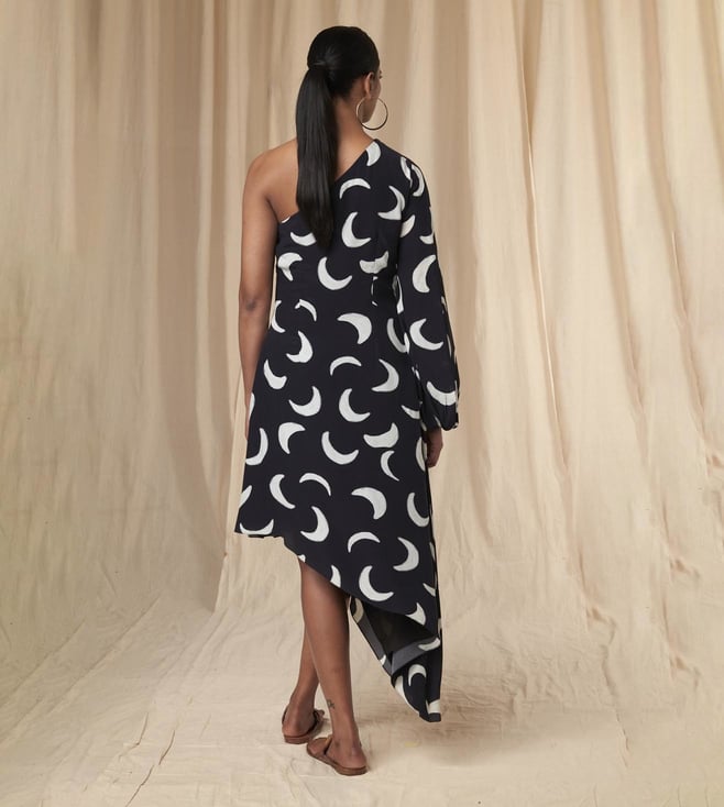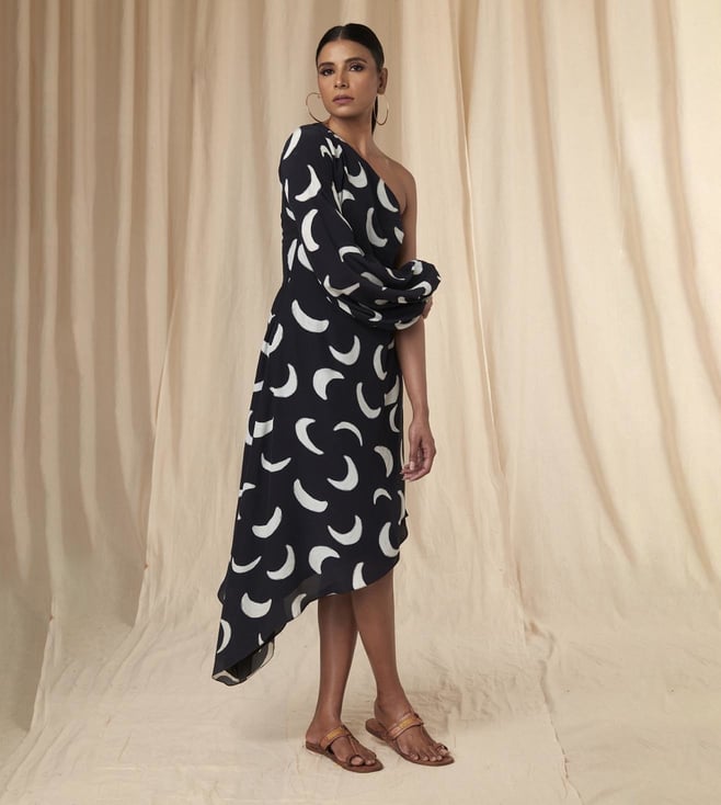 Masaba Black Mooncrest One Shoulder Kaftan Dress