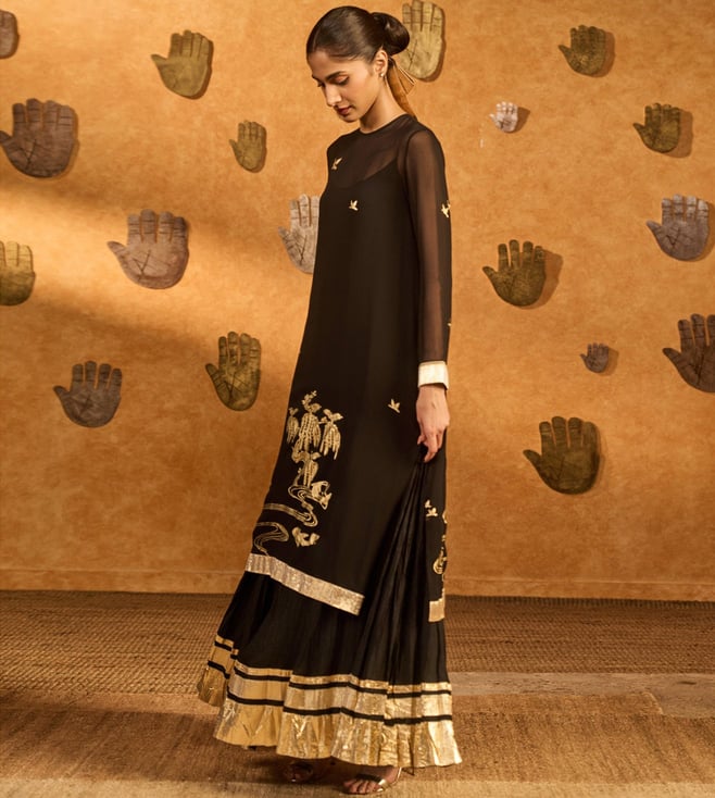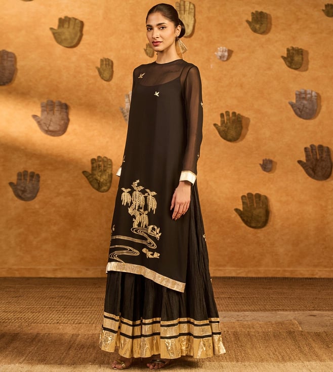 Masaba Black Stillwater Bloom Anarkali Set