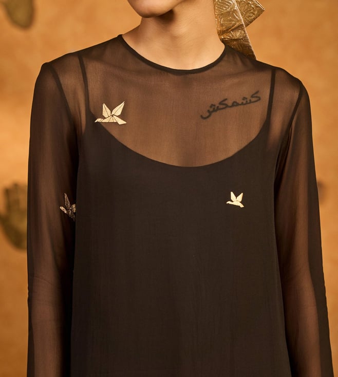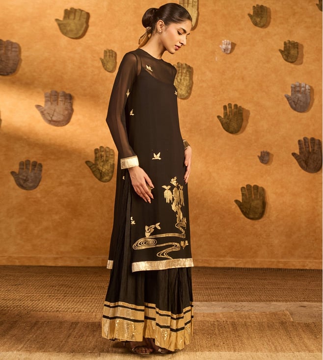 Experience Masaba Black Georgette Raw Silk Semi Fitted Suit Set comfort and style with the perfect for any occasion, Designed for women, this dress combines tradition and elegance. Disclaimer: All other items in the image are only for display purposes and will not be a part of the delivery content. Product colour may slightly vary due to photographic lighting sources. Country of Origin - India.