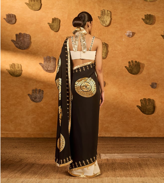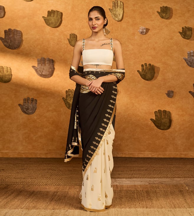 Experience Masaba Black And Ivory Crepe Regular Fit Saree comfort and style with the perfect for any occasion, Designed for women, this dress combines tradition and elegance. Disclaimer: All other items in the image are only for display purposes and will not be a part of the delivery content. Product colour may slightly vary due to photographic lighting sources. Country of Origin - India.