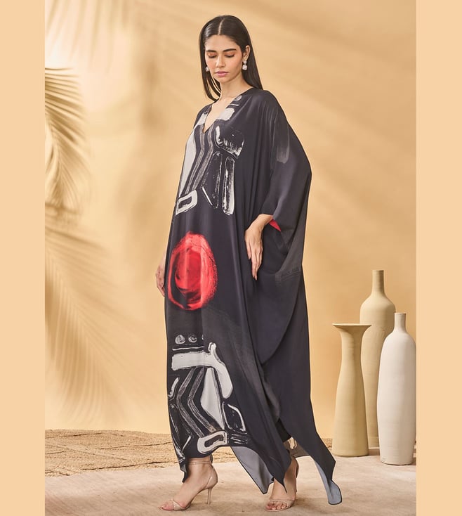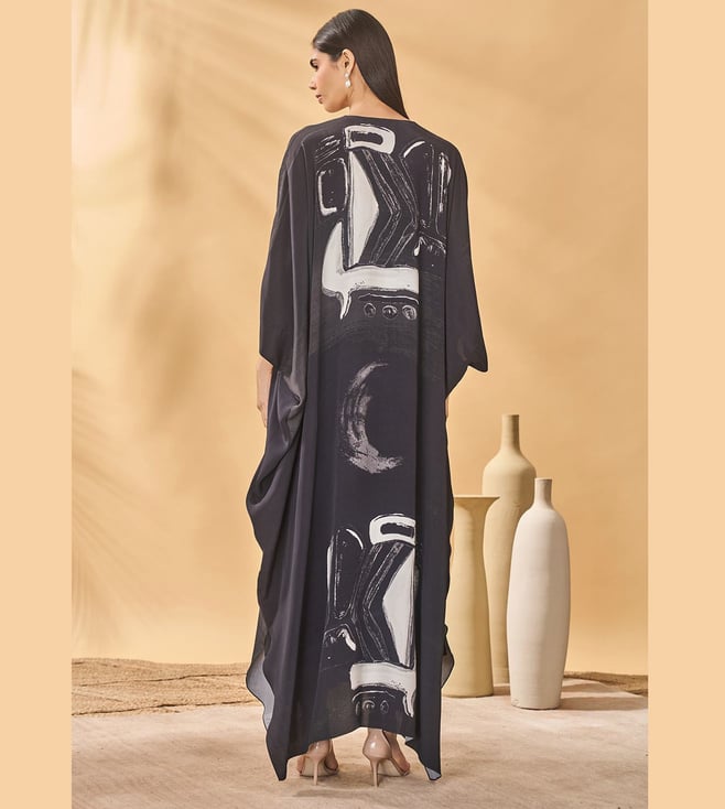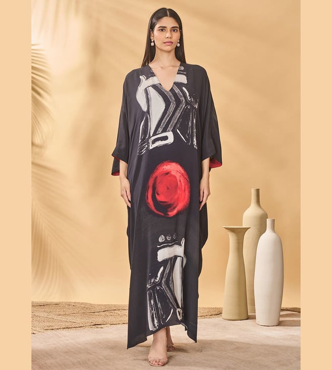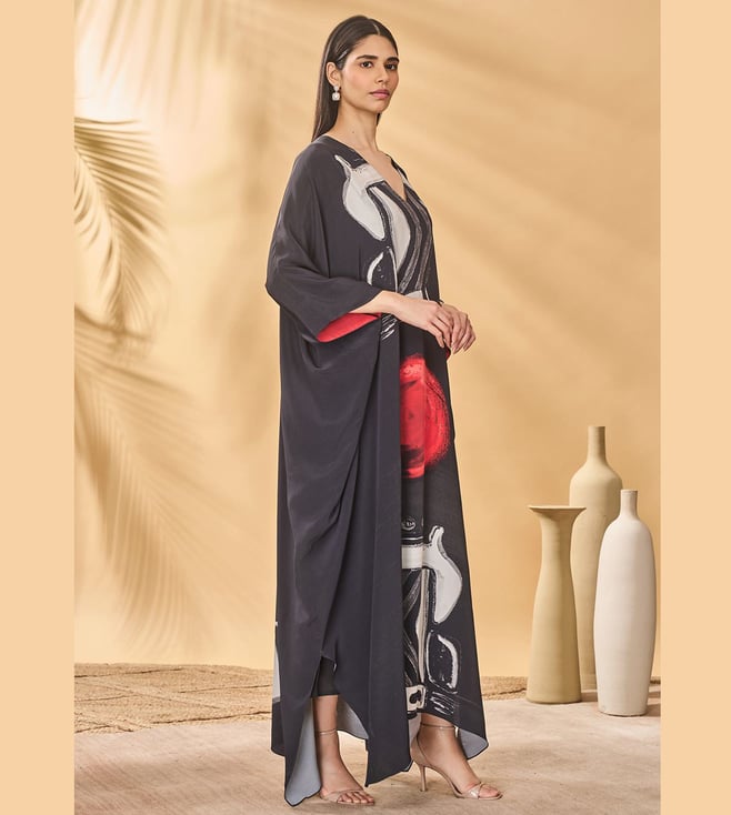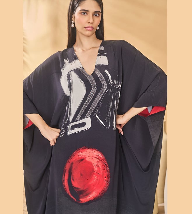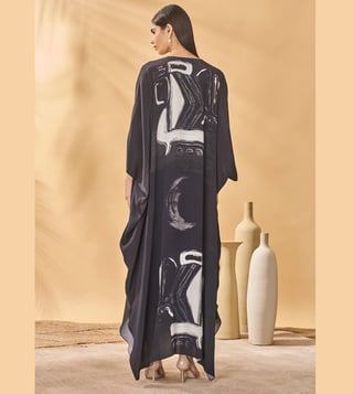 Discover The Crafted From Luxurious Masaba Black¿Crepe Silk Relaxed Fit¿Kaftan This Dress Offers Elegance And Versatility In Vibrant Hues. Disclaimer: All Other Items In The Image Are Only For Display Purposes And Will Not Be A Part Of The Delivery Content. Product Colour May Slightly Vary Due To Photographic Lighting Sources. Country Of Origin - India.