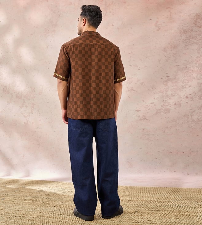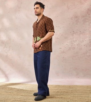 Brown Raw Silk Relaxed Fit Shirt