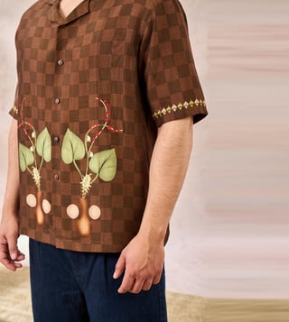 Elevate your style with the Designed for women, Masaba Brown Raw Silk Relaxed Fit Shirt this vibrant piece combines comfort and elegance. Disclaimer: All other items in the image are only for display purposes and will not be a part of the delivery content. Product colour may slightly vary due to photographic lighting sources. Country of Origin - India.