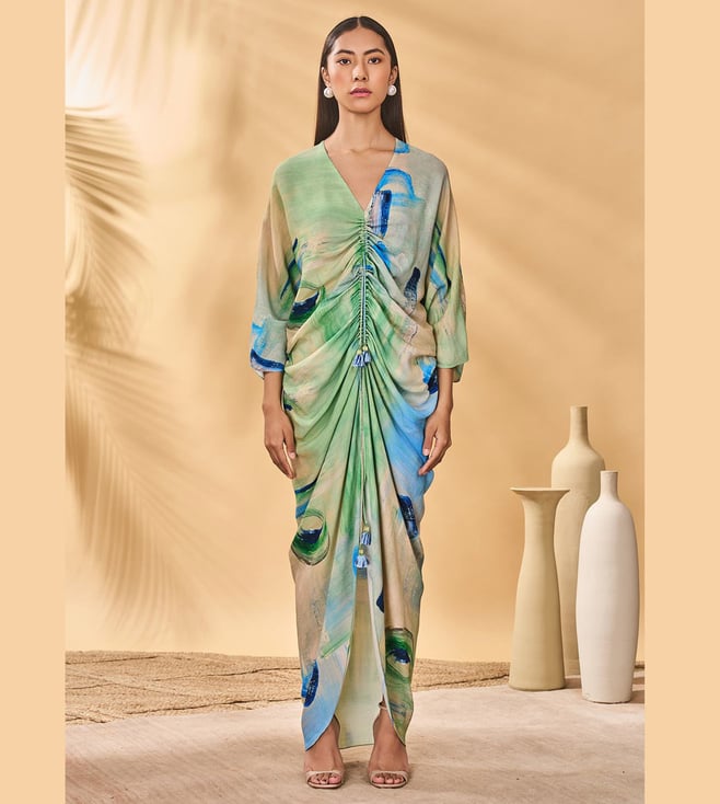 Blue Green¿Crepe Silk Semi Fitted Kaftan