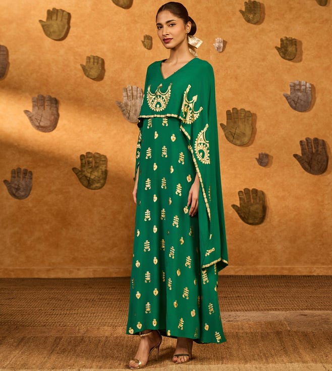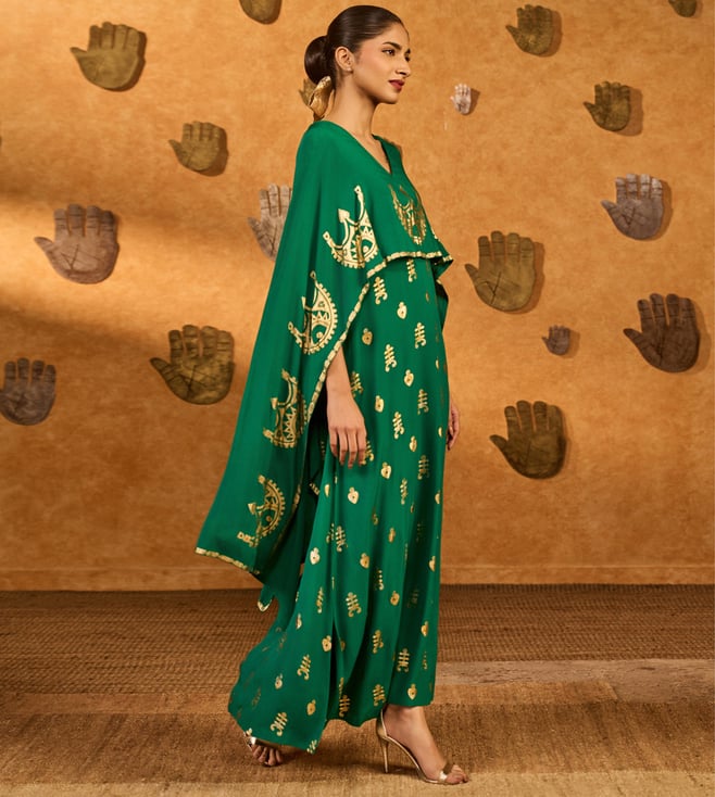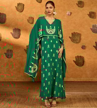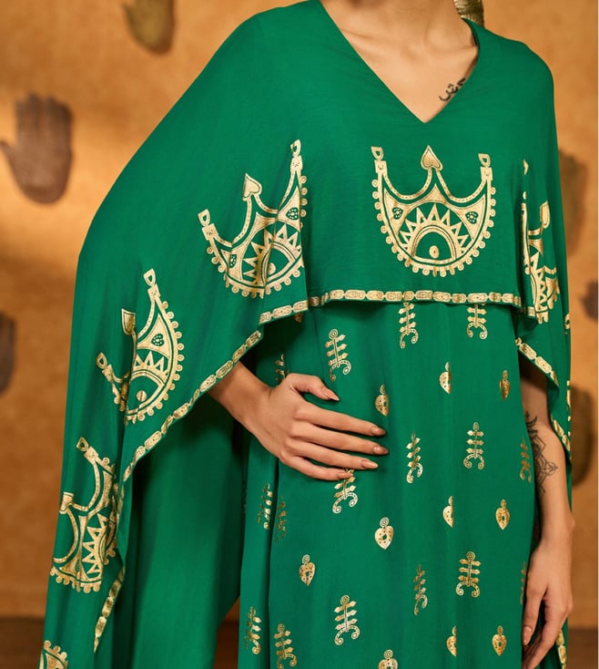 The Masaba Green Crepe Relaxed Fit Suit Set This women's dress combines traditional fabric with vibrant colors for a unique style. Disclaimer: All other items in the image are only for display purposes and will not be a part of the delivery content. Product colour may slightly vary due to photographic lighting sources. Country of Origin - India.