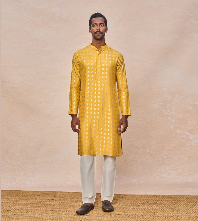 Yellow Raw Silk Relaxed Fit Kurta Set