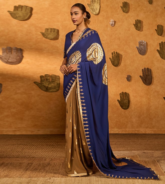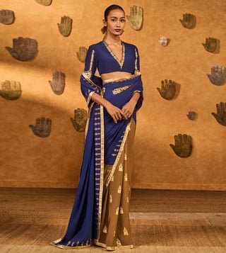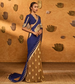 Masaba Mocha And Sapphire Moonfish Saree