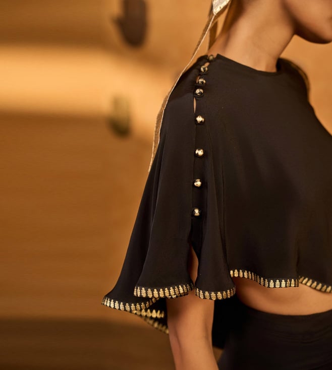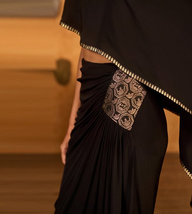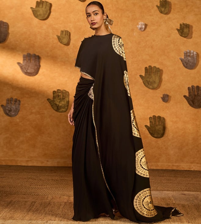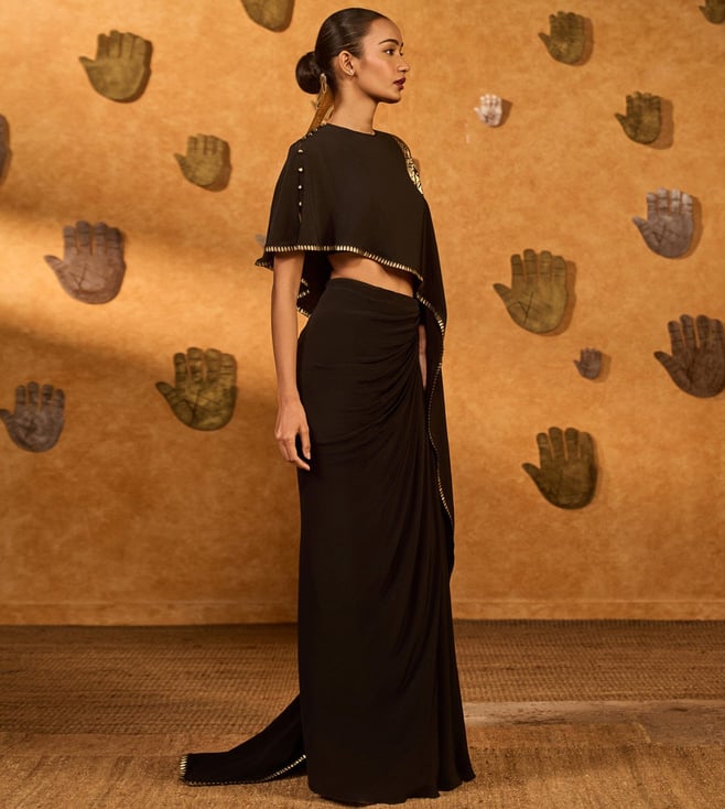 The Masaba Black Crepe Fitted Co-Ord Set This women's dress combines traditional fabric with vibrant colors for a unique style. Disclaimer: All other items in the image are only for display purposes and will not be a part of the delivery content. Product colour may slightly vary due to photographic lighting sources. Country of Origin - India.