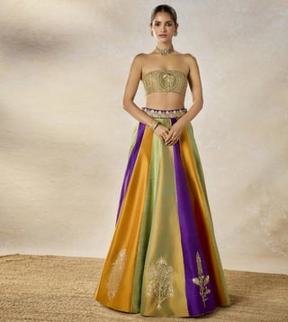 Masaba Multi Color Heavy Raw Silk Semi Fitted Lehenga Set