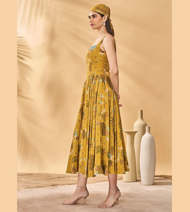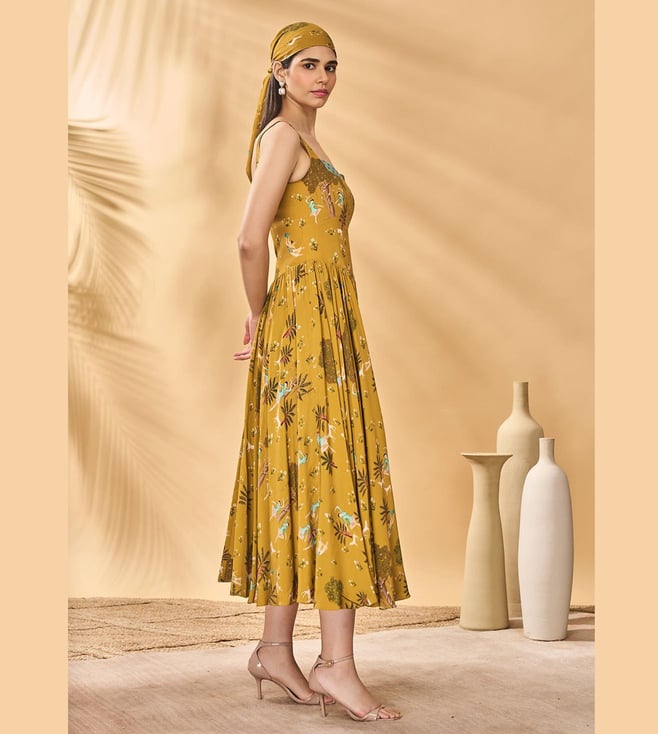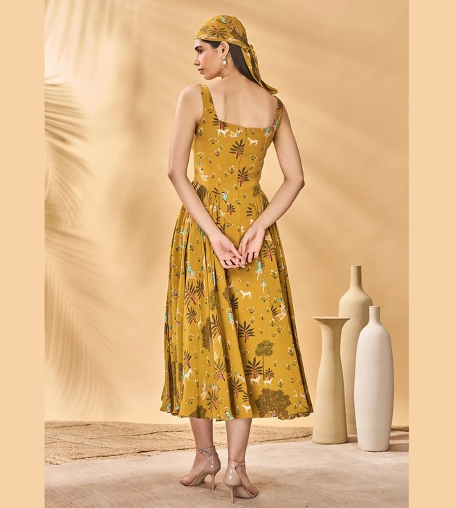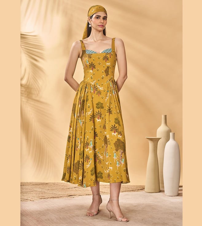 Experience Masaba Mustard Crepe Silk Flare Fit Dress Comfort And Style With The Perfect For Any Occasion, Designed For Women, This Dress Combines Tradition And Elegance. Disclaimer: All Other Items In The Image Are Only For Display Purposes And Will Not Be A Part Of The Delivery Content. Product Colour May Slightly Vary Due To Photographic Lighting Sources. Country Of Origin - India.