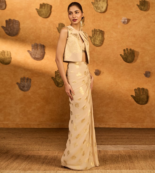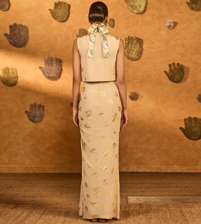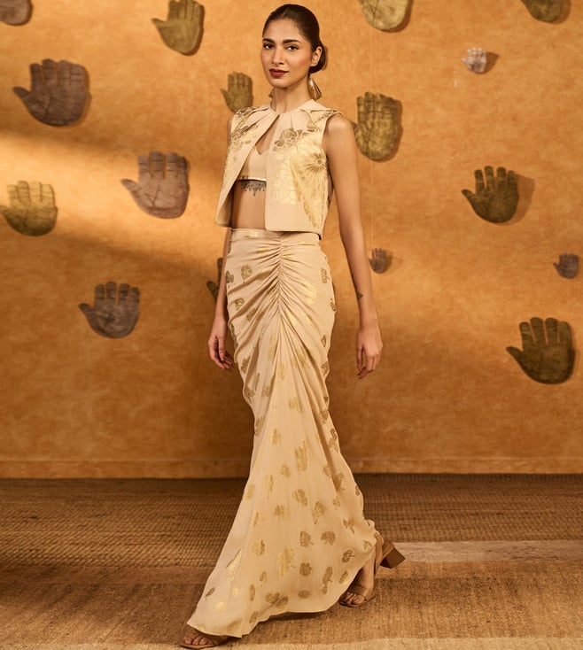 Discover the Crafted from luxurious satin, Masaba Beige Crepe Silk Fitted Co-Ord Set this dress offers elegance and versatility in vibrant hues. Disclaimer: All other items in the image are only for display purposes and will not be a part of the delivery content. Product colour may slightly vary due to photographic lighting sources. Country of Origin - India.
