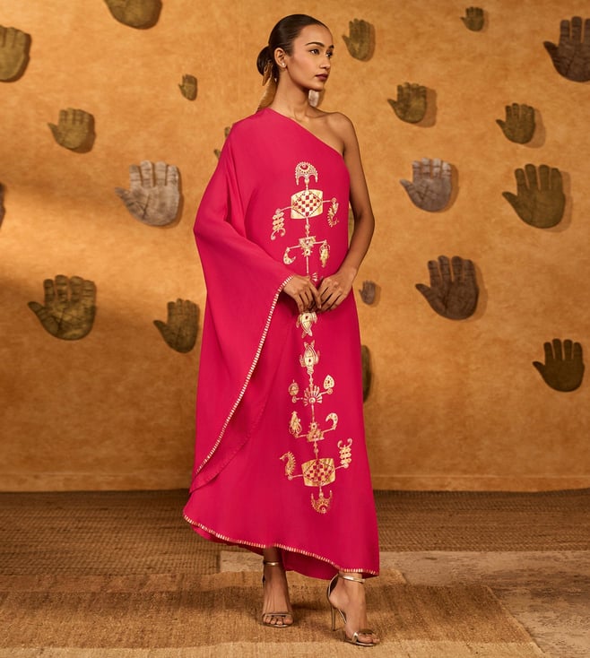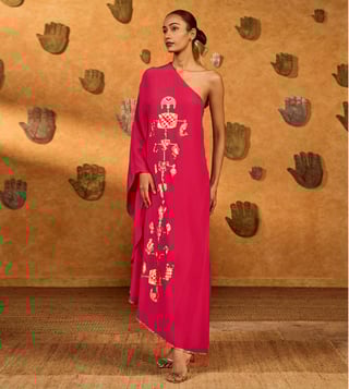 The Masaba Raspberry Crepe Relaxed Fit Suit Set This women's dress combines traditional fabric with vibrant colors for a unique style. Disclaimer: All other items in the image are only for display purposes and will not be a part of the delivery content. Product colour may slightly vary due to photographic lighting sources. Country of Origin - India.